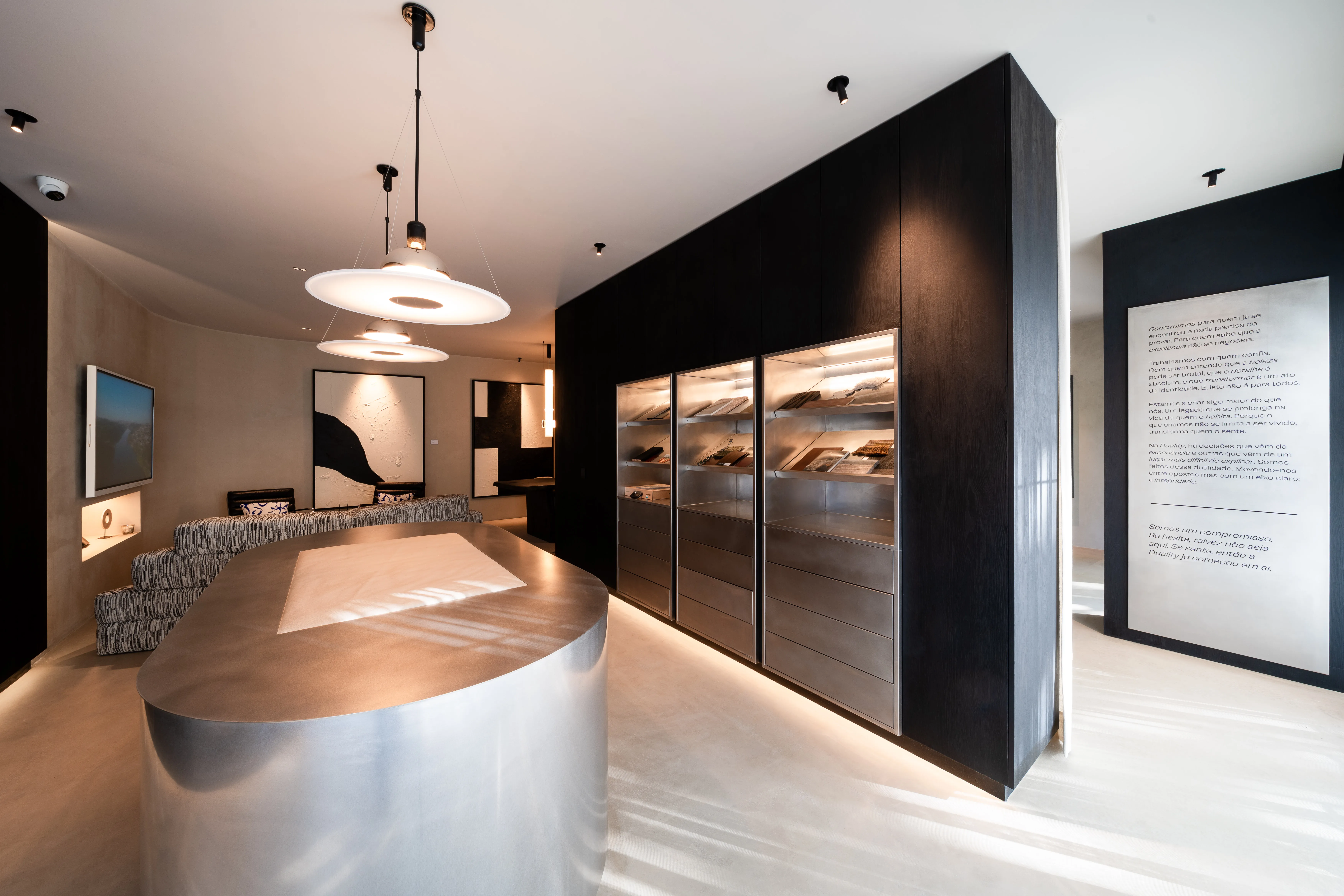 O espaço integra diferentes áreas pensadas para potenciar a interação e a inspiração, como o nosso Lab, onde exploramos materiais e soluções inovadoras, e o Vision Room, onde os projetos são apresentados numa dimensão imersiva, permitindo ao cliente interagir e experienciar cada detalhe antes da execução.