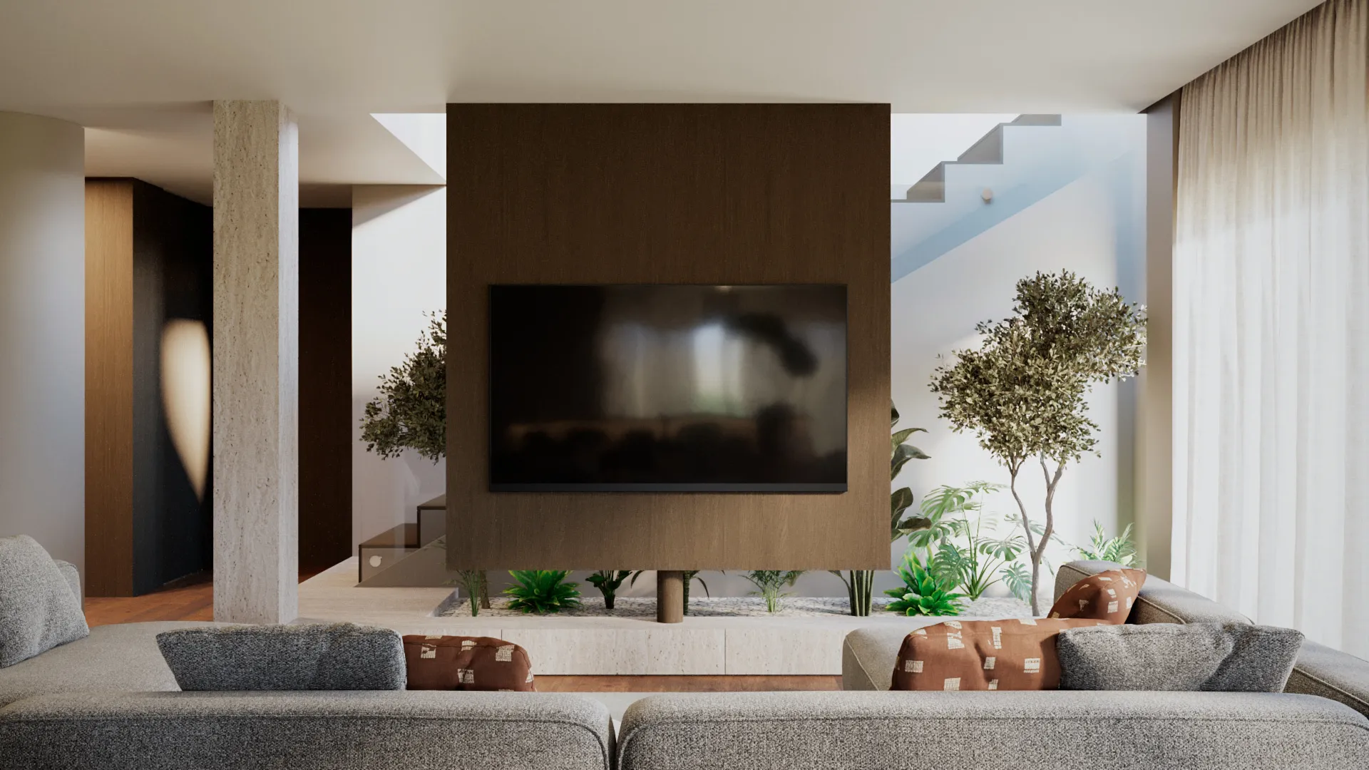 Neste projeto, criámos uma nova narrativa ao estabelecer uma ligação orgânica entre o interior e o jardim, ampliando os limites da casa e transformando o espaço exterior numa verdadeira extensão do lar.