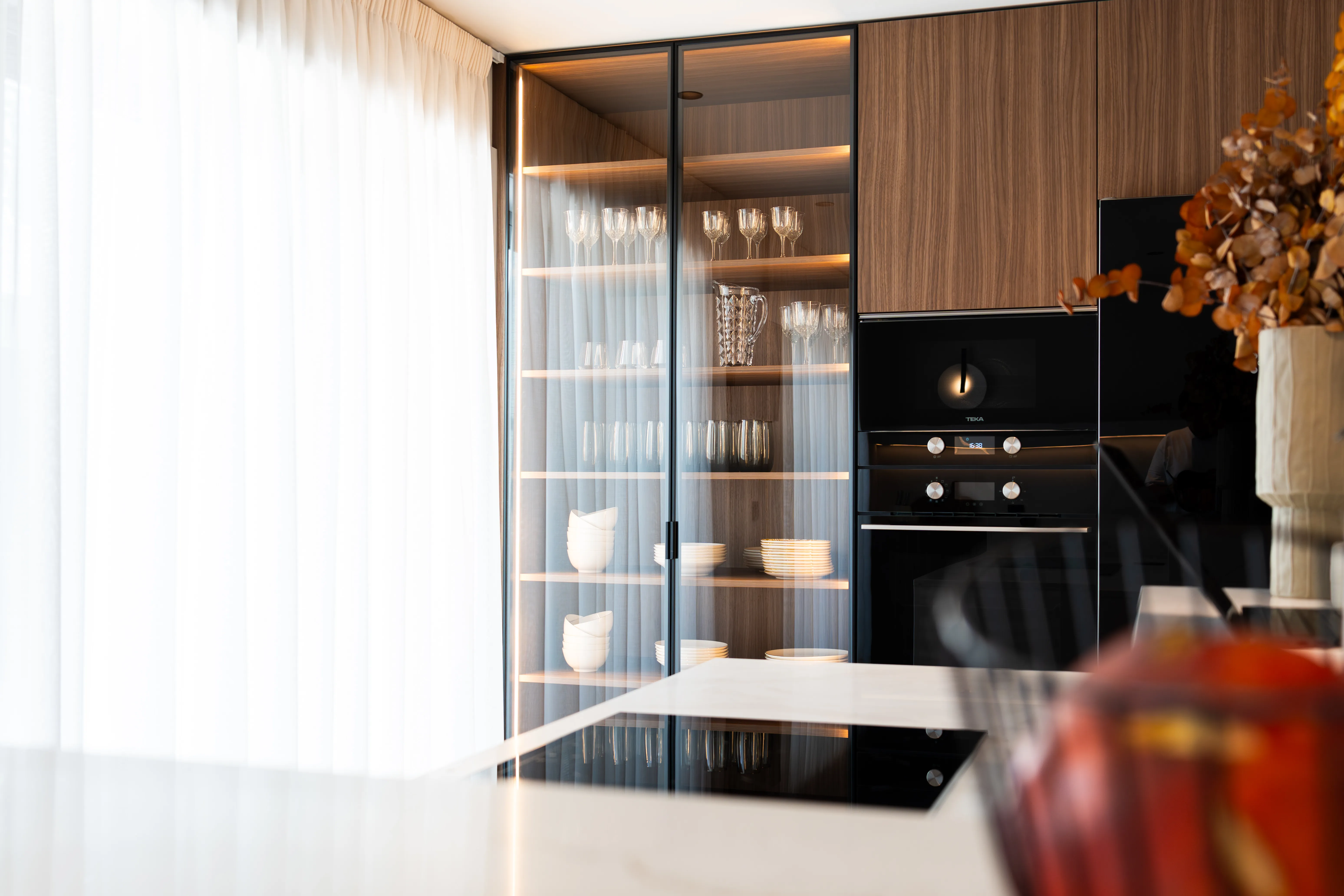 A leitura cuidada das proporções e fluxos permitiu uma redistribuição espacial clara e funcional. No piso inferior, a cozinha articula-se com as zonas de estar e jantar, criando um espaço social contínuo que se afirma como o núcleo da casa.